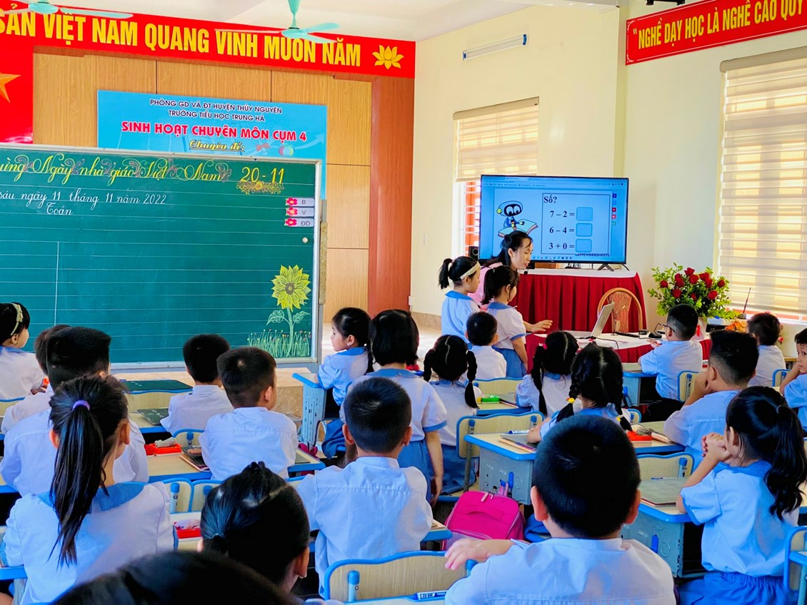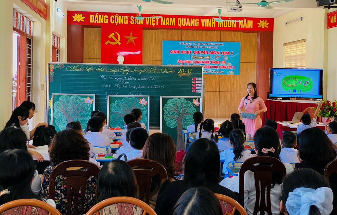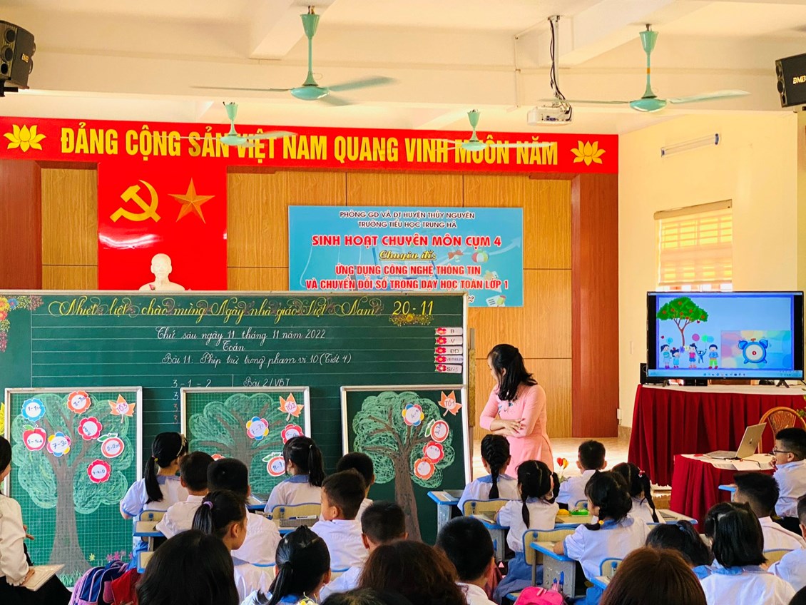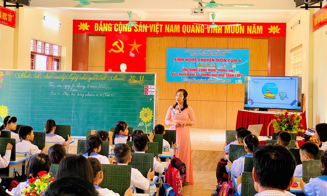 Ngày 11/11/ 2022, Trường Tiểu học Trung Hà thực hiện chuyên đề cấp cụm: “ Ứng dụng CNTT và chuyển đổi số trong dạy học Toán lớp 1”