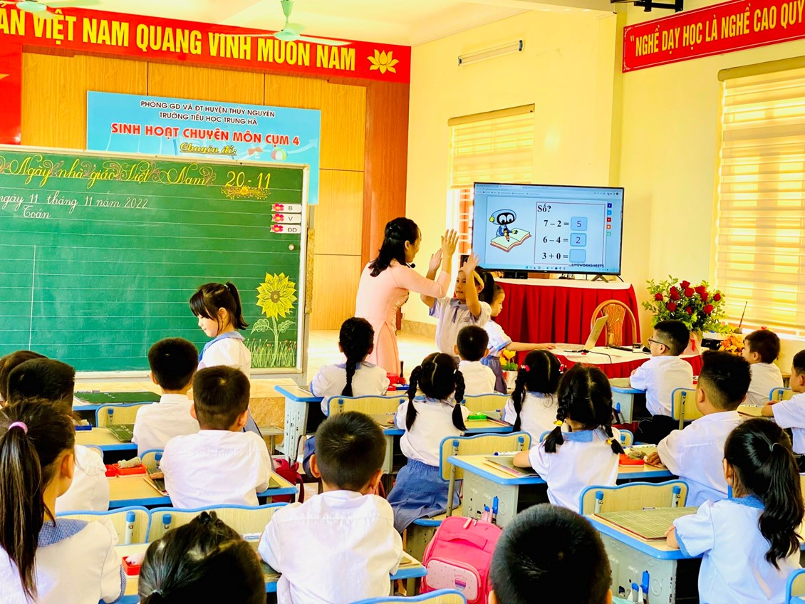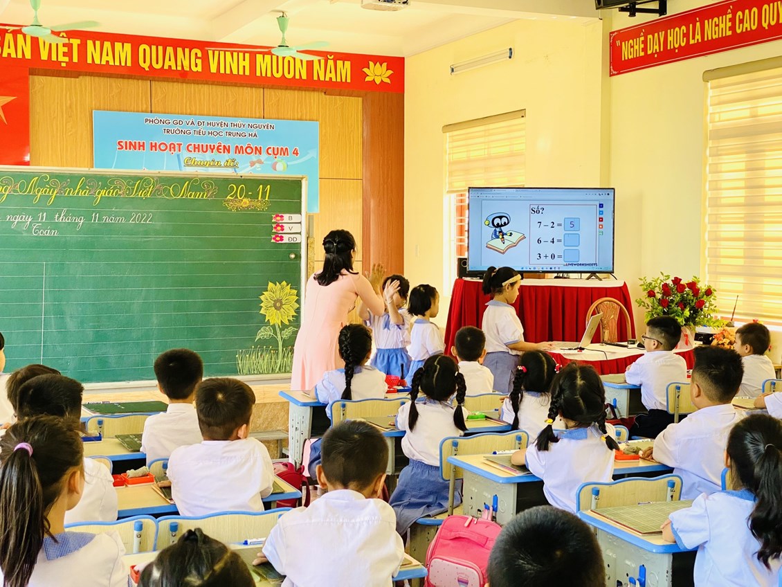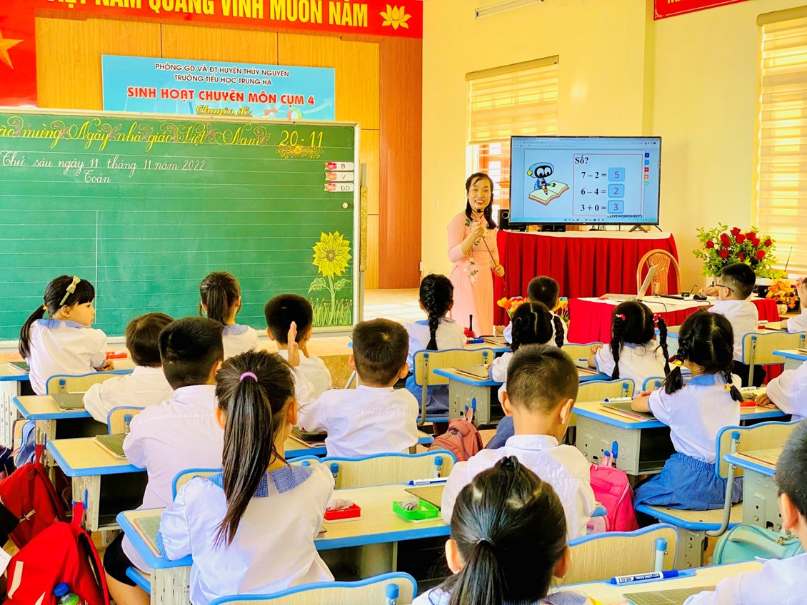 Ngày 11/11/ 2022, Trường Tiểu học Trung Hà thực hiện chuyên đề cấp cụm: “ Ứng dụng CNTT và chuyển đổi số trong dạy học Toán lớp 1”