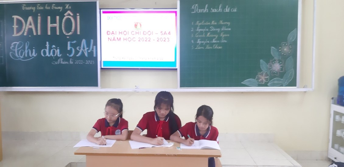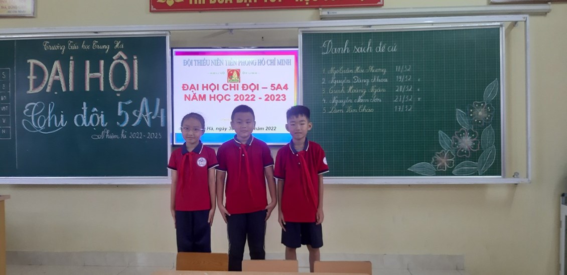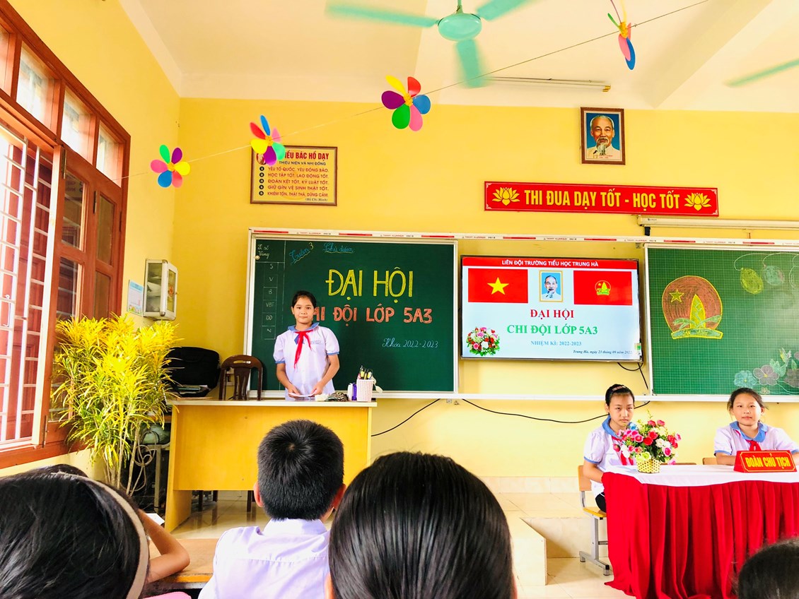 - Thực hiện chương trình công tác Đội và phong trào thiếu nhi năm học 2022-2023 khối 4,5 trường TH Trung Hà đã tổ chức thành công Đại hội Chi đội nhiệm kỳ năm học 2022-2023 vào tháng 9 năm 2022.