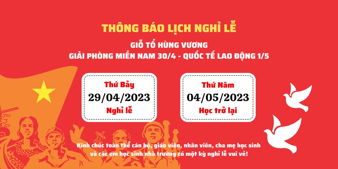 📘Thực hiện Công văn số 949/SGDĐT_VP ngày 11 tháng 04 năm 2023 của Sở Giáo dục và Đào tạo Hải Phòng về việc nghỉ lễ giỗ Tổ Hùng Vương, Ngày Giải phóng miền Nam thống nhất đất nước và Ngày Quốc tế lao động năm 2023.