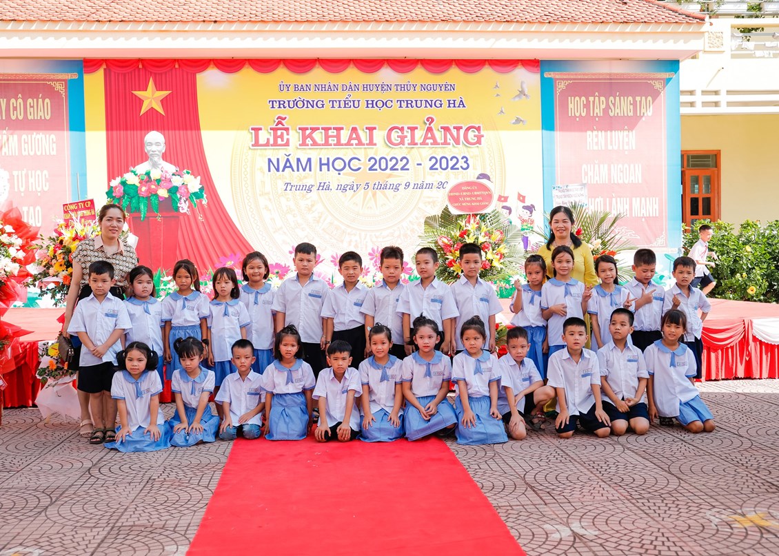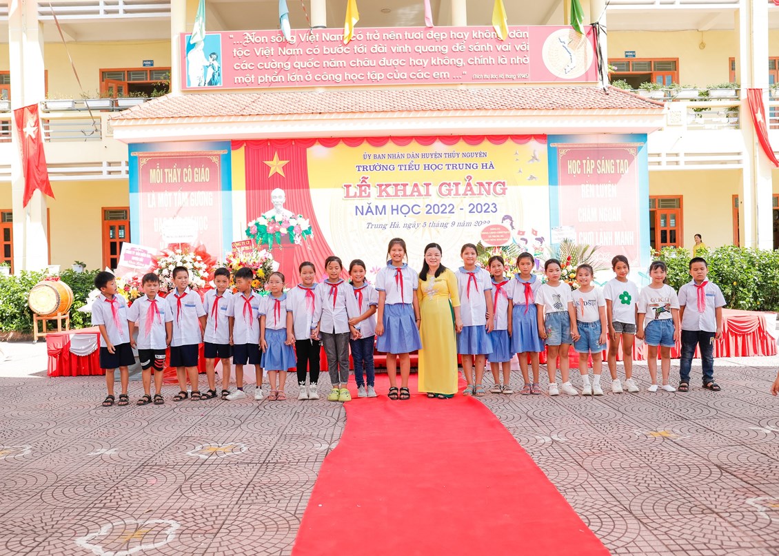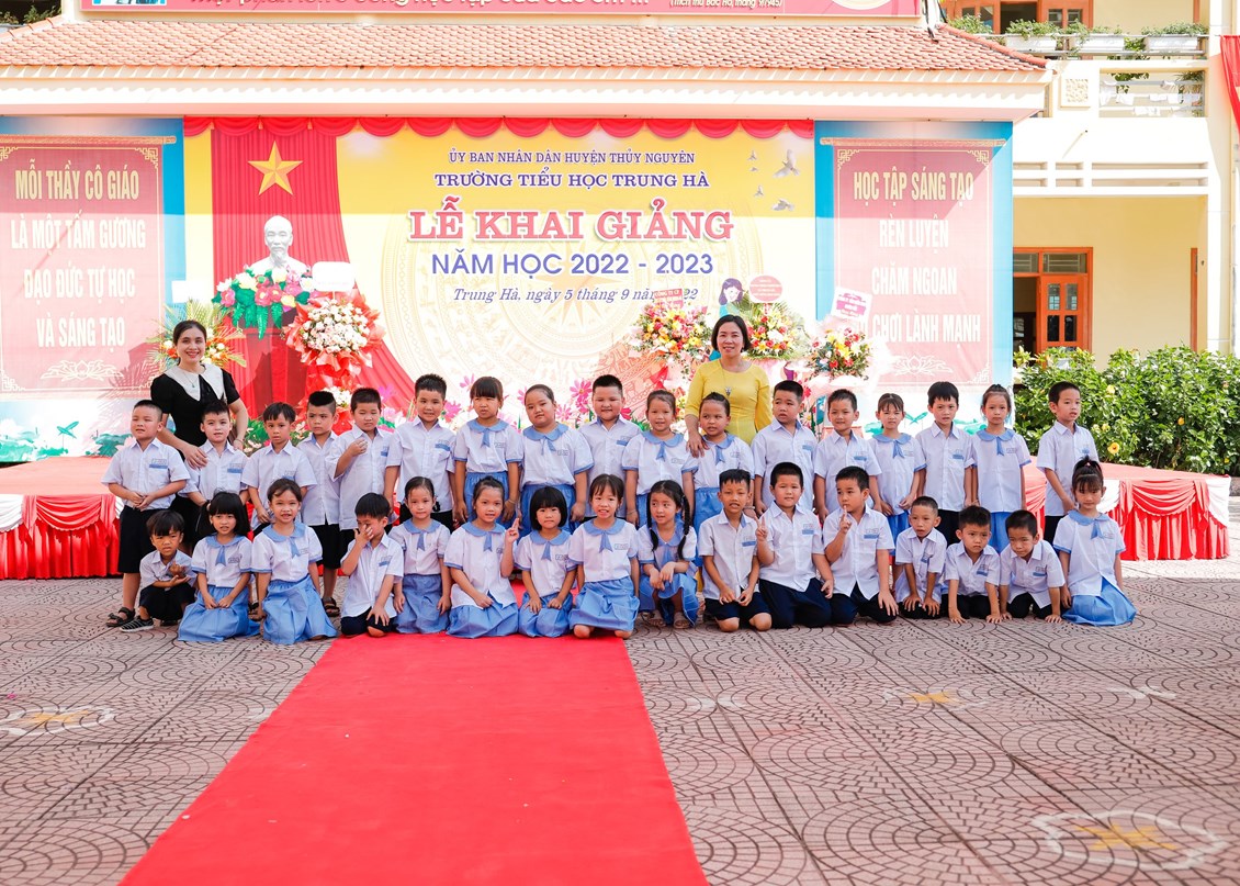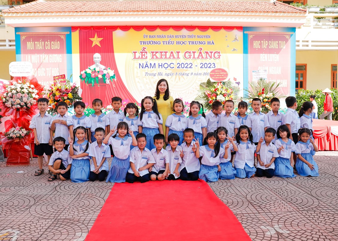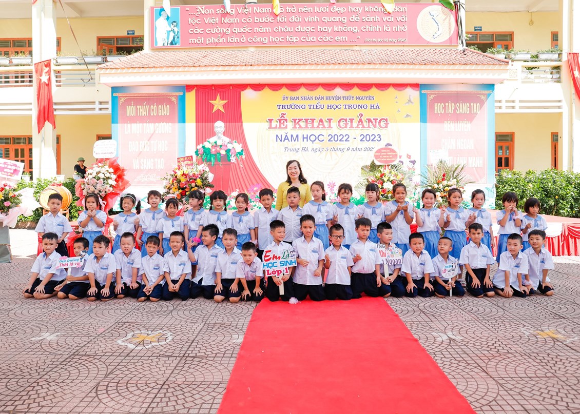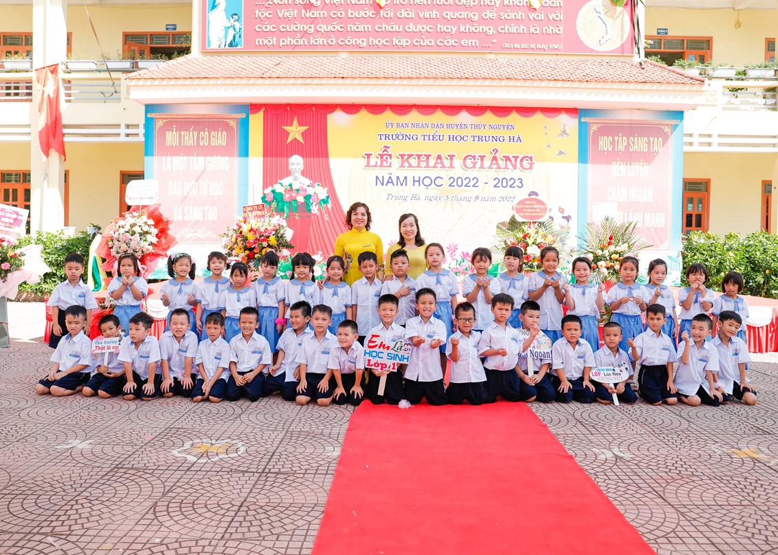 Mở đầu buổi lễ là lễ đón các em học sinh lớp 1. Ngày đầu đến trường các em vẫn còn bỡ ngỡ với thầy cô mới, với bạn bè mới, ngôi trường mới, nhưng dưới dìu dắt tận tình, chu đáo từ các cô giáo chủ nhiệm, ngôi Trường Tiểu Trung Hà sẽ là nơi nâng cánh những ước mơ cho các em bay cao, bay xa trên con đường tương lai rộng mở.