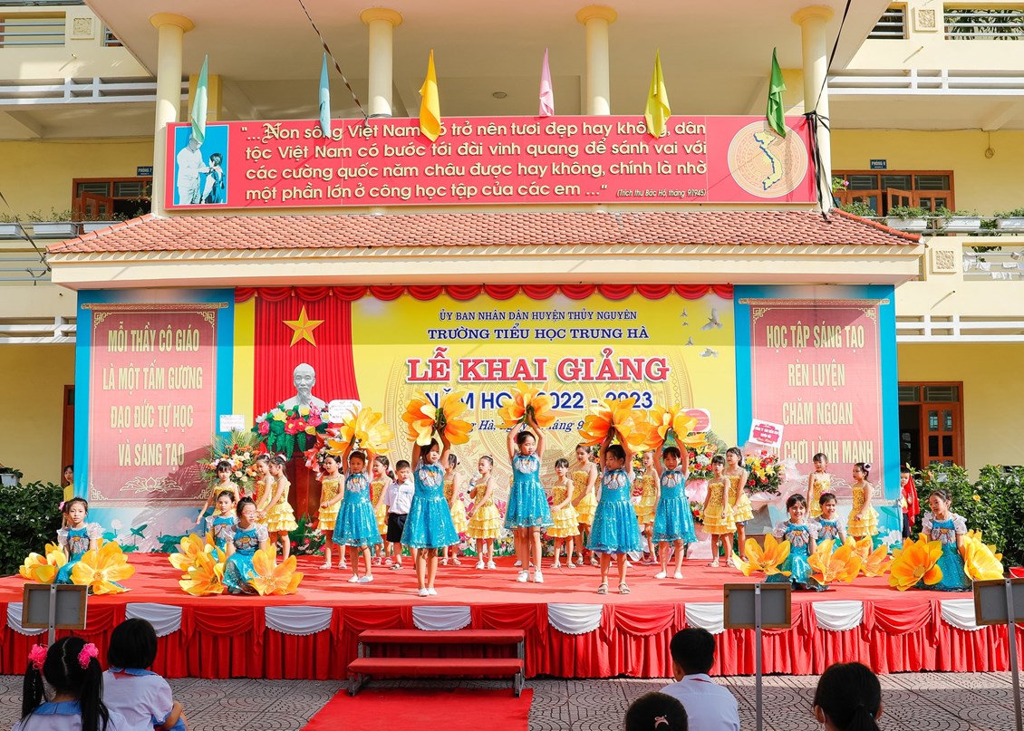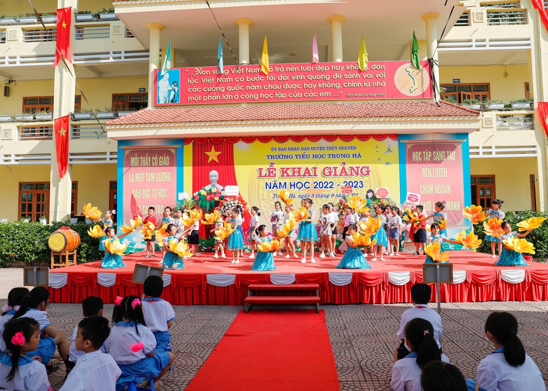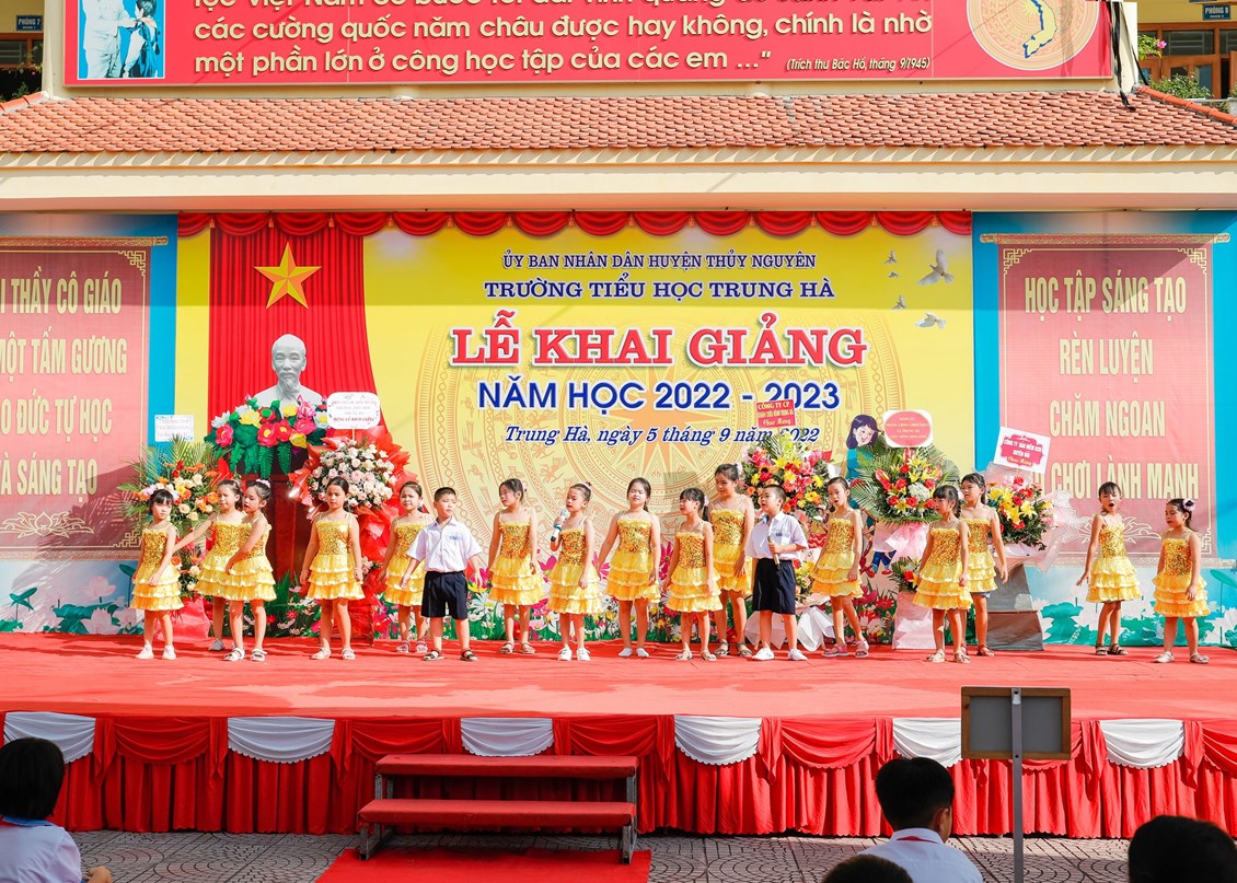 Hòa chung trong không khí cả nước tưng bừng, phấn khởi, hào hùng của mùa thu lịch sử, cùng với hàng triệu học sinh cả nước náo nức đón chào năm học mới. Sáng ngày 05/09/2022 trường Tiểu học Trung Hà long trọng tổ chức Lễ khai giảng năm học mới, năm học 2022 - 2023.