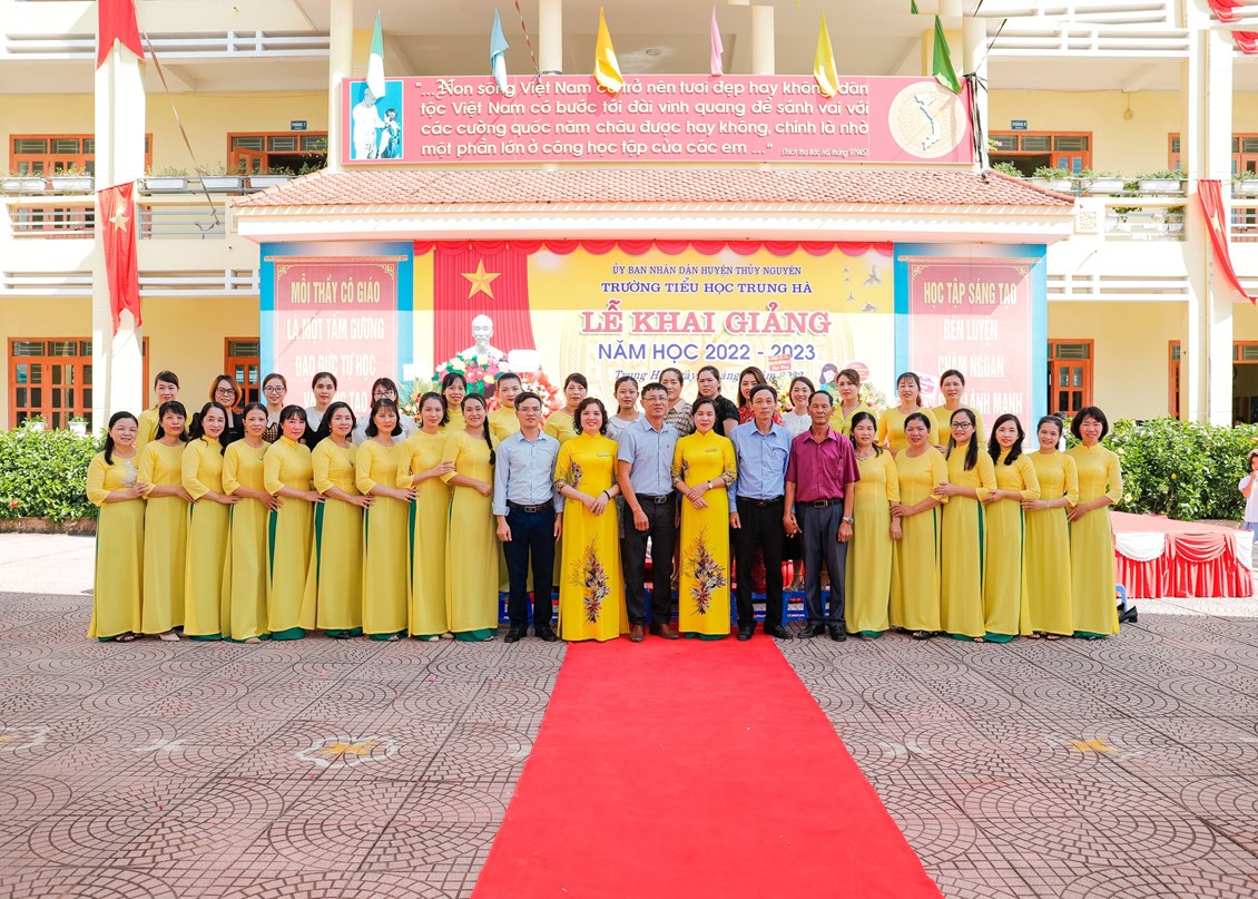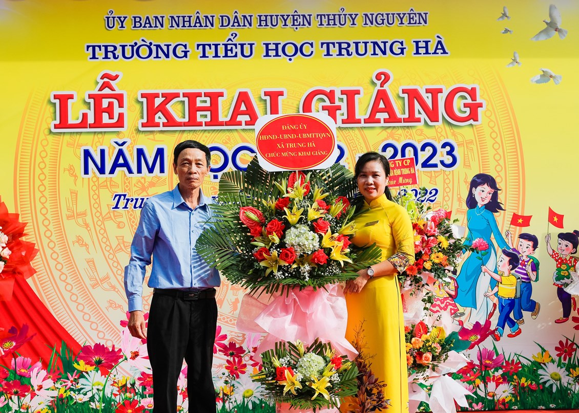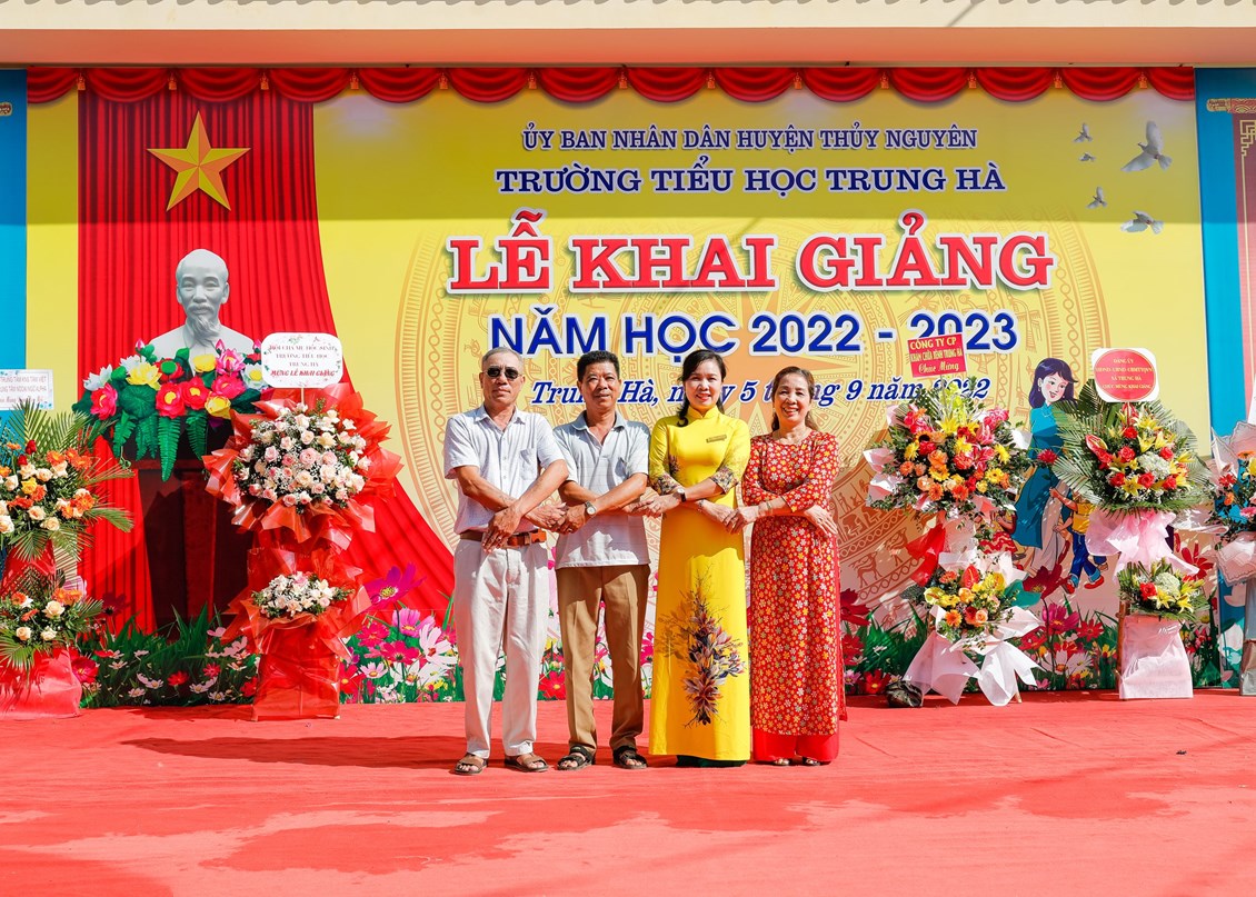 Tới dự buổi lễ khai giảng năm học mới 2022 - 2023 với các thầy giáo, cô giáo và 579 em học sinh trường Tiểu học Trung Hà, có các đồng chí lãnh đạo đại diện cho Đảng ủy, Hội đồng nhân dân, Ủy ban nhân dân, Ủy ban mặt trận Tổ quốc Việt Nam xã Trung Hà, các đơn vị bộ đội kết nghĩa, các ban, ngành đoàn thể địa phương, các doanh nghiệp cùng Ban đại diện cha mẹ học sinh các lớp, … cũng tới tham dự và có những lẵng hoa tươi thắm chúc mừng thầy và trò nhà trường. Đây là nguồn động viên tinh thần vô cùng lớn lao giúp các thầy cô giáo có thêm động lực, hoàn thành tốt nhiệm vụ được giao trước thềm năm học mới.