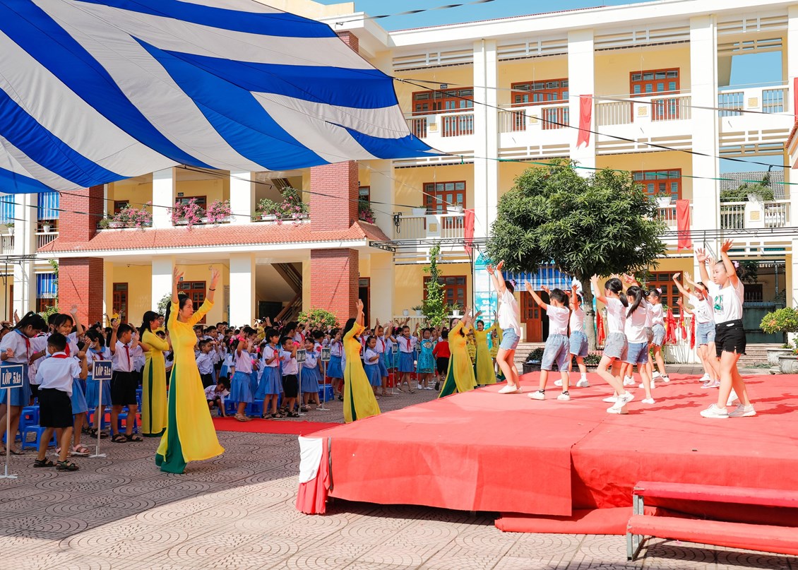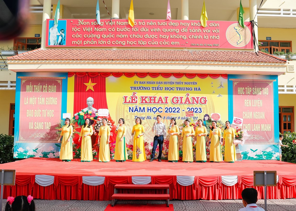 Để chào mừng lễ khai giảng năm học mới thành công tốt đẹp, đội văn nghệ xung kích nhà trường đã mang đến những lời ca, tiếng hát nhằm tạo không khí vui tươi, phấn khởi, sẵn sàng bước vào năm học mới cho các thầy cô giáo và các em học sinh.